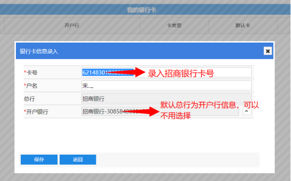 (2)錄入卡號(hào)信息