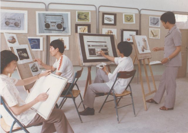 1986年,工業(yè)設(shè)計(jì)系學(xué)生在設(shè)計(jì)課程中