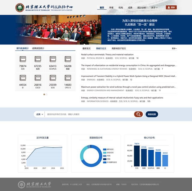 2019年下半年,學(xué)校推出統(tǒng)一的“科技數(shù)據(jù)平臺”,通過采集國內(nèi)外權(quán)威檢索的授權(quán)數(shù)據(jù),結(jié)合機器學(xué)習(xí)算法,自動形成包括論文、基金、專利等數(shù)據(jù)在內(nèi)的教師科研成果數(shù)據(jù)庫,不僅形成北理工科研成果的核心資源庫,促進科研發(fā)展和學(xué)科交叉融合,也將有效解決教師在各類申請、評價過程中,重復(fù)填報個人學(xué)術(shù)成果的問題。