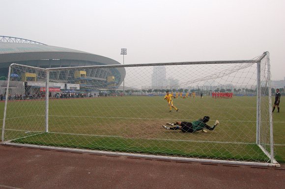 讓我們再回顧一下激動人心的沖甲之戰的點球決戰過程吧。首先是天津火車頭隊罰點,由于壓力過大,這位對方的場上核心隊員竟然第一個罰球就將球罰飛了~~~