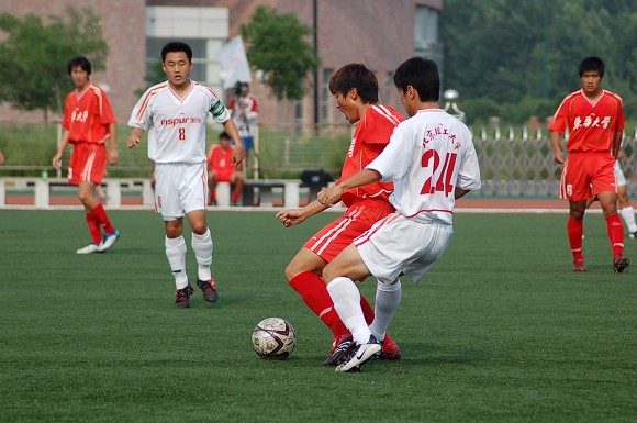 7月7日下午,我校足球隊在沈陽理工大學足球場迎來了李寧杯第六屆中國大學生足球聯賽的半決賽,對手為東華大學足球隊。東華大學隊可謂是我校的老對手,在2004年全國大運會的足球決賽中與我校足球隊戰成平局,最后靠點球大戰獲得冠軍,我校足球隊屈居第二(點擊進入相關報道)。在2005年飛利浦第五屆中國大學生足球聯賽的半決賽中,由于我校足球隊處于新老交替時期,再次以0:2告負東華大學隊(點擊進入相關報道),在三、四名決賽中又負于同濟大學隊從而名列第四(點擊進入相關報道),而東華大學隊則在決賽中戰勝中國人民大學隊獲得冠軍。
