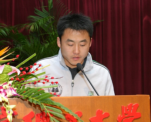 足球隊主教練金志揚的講話充滿了激情,他認為,北理工足球隊成功沖甲是中國足球的一個亮點,是各方面支持和努力的結果。事實證明,北理工足球隊是一支有素質、受過教育、有戰斗力的隊伍,代表了積極向上、勇往直前的精神。沖甲成功之后的道路更加艱苦,但北理工足球隊全體成員一定會往前沖,絕不后退,一如既往地努力拼搏,以最大的努力迎接中國足球的春天。