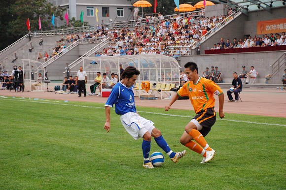 下半場開始,愛國者隊率先發難,37號金俊值左路突破后妙傳,跟進的兩名愛國者隊隊員沒有碰到,但回防的七斗星隊隊員險些自擺烏龍。此后雙方比賽趨于平穩,愛國者隊立足于打防守反擊,但總解決不好最后一傳的問題,而七斗星隊更多的是依靠遠射來威脅愛國者隊的大門。