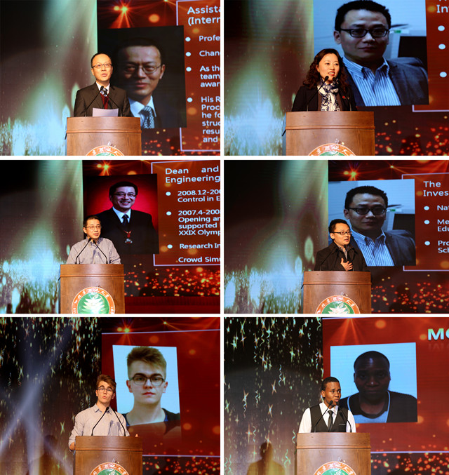 隨后嘉賓們?yōu)楸灸甓仍u(píng)選出的34名成績優(yōu)異、表現(xiàn)突出的優(yōu)秀留學(xué)生和23名在全國和北京市的各項(xiàng)比賽中獲獎(jiǎng)的同學(xué)頒發(fā)了獎(jiǎng)狀和證書。2016年,我校留學(xué)生積極參加各類文化活動(dòng)和競(jìng)賽,取得了優(yōu)異的成績,為學(xué)校贏得了榮譽(yù)。其中,巴基斯坦學(xué)生薩伊德和阿士贏得了全國優(yōu)秀外國留學(xué)生稱號(hào),巴勒斯坦學(xué)生奧加等6名學(xué)生分別在北京市人民對(duì)外友好協(xié)會(huì)組織的“在京外國留學(xué)生‘我與北京’主題征文比賽”中獲得一等獎(jiǎng)、三等獎(jiǎng)和優(yōu)秀獎(jiǎng),南非學(xué)生孟天宇在“青春在異國閃爍”第五屆留學(xué)生征文暨朗誦比賽中獲得三等獎(jiǎng),我校留學(xué)生武術(shù)隊(duì)在2016年“舞動(dòng)中國 情系冬奧”來華留學(xué)生武林大會(huì)中獲得團(tuán)體二等獎(jiǎng)、網(wǎng)絡(luò)人氣獎(jiǎng)和優(yōu)秀組織獎(jiǎng)等。
