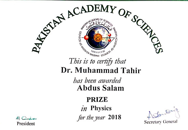 the Spectacle報道,2018年12月,巴基斯坦科學院和發展中國家科學院授予我校材料學院2011級校友、巴基斯坦籍博士研究生塔黑爾(MUHAMMAD TAHIR)“阿卜杜勒·薩拉姆獎(Abdus Salam Award)”,以獎勵其在材料科學研究方面取得的成就。