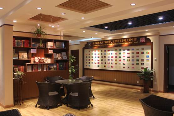 在活動室的面墻上,特別設計了一面“國旗墻”,將我校所有在校留學生的國家的國旗粘貼在墻上,體現了北京理工大學熱情歡迎八方學子的理念。