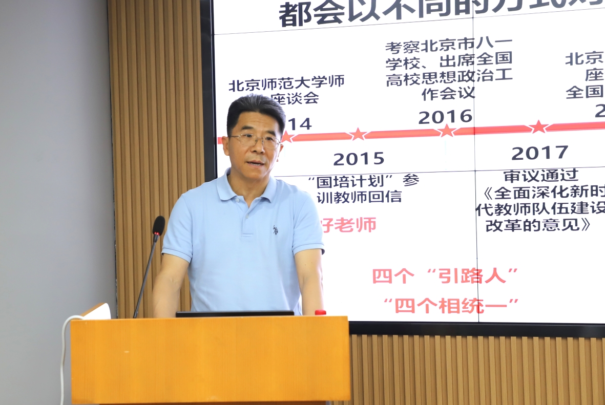 隨后,黨委教師工作部/人力資源部部長金海波以《堅持鑄魂強師·潛心恒心育人》為題進行了師德師風政策解讀及警示案例通報。金海波系統(tǒng)梳理了2014年以來習近平總書記關于師德師風的重要論述;詳細介紹了師德師風總體要求,就紅七條、十準則、十不得等規(guī)范展開了深刻解讀;全方位展示了學校在師德師風建設工作中的實踐探索與創(chuàng)新成果;并結(jié)合典型警示案例,讓圖書館教職工對師德師風建設有了更為直觀、深刻的認識;明確了師德師風無小事,必須時刻增強堅守底線、不越紅線的紀律意識。