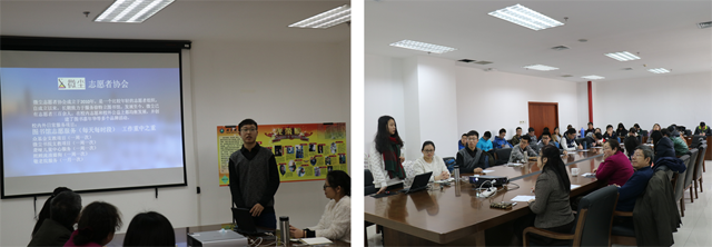 表彰會上,姚館長首先為大家介紹了2015年志愿者參與圖書館工作的概況,對志愿者們的工作表示肯定,并鼓勵大家以后在圖書館的志愿活動中發揮更大的作用,將志愿活動常規化,打造成有特色的志愿品牌活動。接著兩位志愿者協會代表做了總結匯報,張哲同學給大家普及了微塵志愿者協會的有關知識以及從事的志愿服務內容。綠風志愿者協會的肖雨同學為大家介紹了他們協助圖書館開展2015年世界讀書日活動的有關情況,并對以后的活動提出了新的想法和建議。