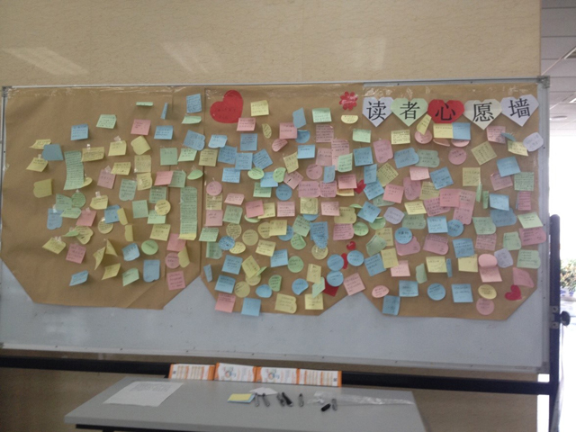 為了解廣大讀者對圖書館的需求與情感,暢通圖書館與讀者溝通渠道,圖書館在一層大廳專門開辟了“讀者心愿墻”,傾聽讀者心聲。廣大讀者熱烈回應,暢所欲言:“希望圖書館可以訂購更專業(yè)的經(jīng)濟期刊”,“希望圖書館可以提供溫馨的咖啡廳”,“圖書館我的家”等等,讀者的聲音不斷匯集于此。圖書館黨總支書記鄭炎非常關注讀者留言,要求將其分類總結予以落實,不斷地提升服務品質,優(yōu)化圖書館的環(huán)境。