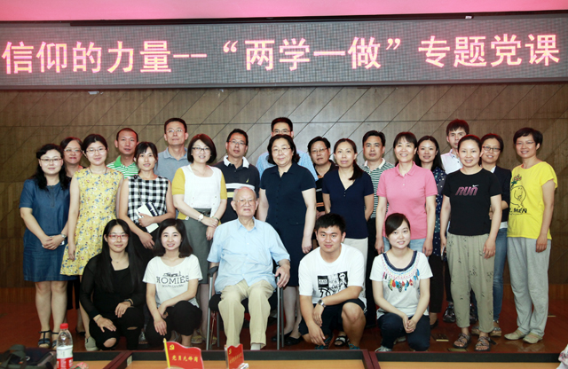 6月28日上午,圖書館黨總支在一層報告廳開展了“信仰的力量”為主題的“兩學一做”專題黨課活動。鄭焱書記做了主題報告,講述了一位優秀共產黨員、革命先輩陳毅安烈士的光榮事跡?,F場還邀請了陳毅安烈士的遺腹子陳晃明先生,同臺回憶父親陳毅安烈士生前的事跡,謳歌與烈士并肩作戰的革命前輩精神。