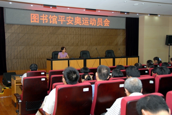 圖書館于2008年7月18日上午召開了“圖書館平安奧運動員會”。會議由書記兼副館長馬宏偉主持,她首先傳達了學校《北京理工大學奧運安保群防群治工作方案》、《關于做好2008年暑假工作的通知》等文件,傳達了有關會議的主要精神。然后結合圖書館實際對奧運安保和暑期的工作進行了部署,將責任落實到部門,落實到人,要求大家按照學校的總體部署和圖書館的具體要求,立足本職工作,在各自的崗位上盡職盡責,確保萬無一失。