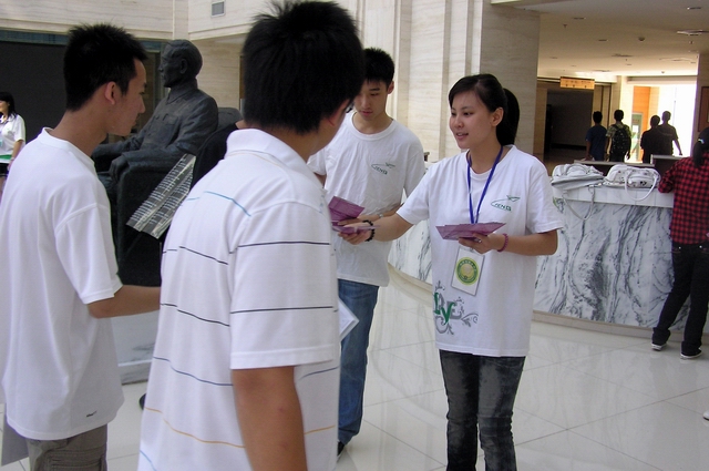 圖書館“泊馨軒---綠萌書屋” 和“北理綠萌”學生社團在圖書館前向新生派發書刊。其中有“北理綠萌”收集的學生捐書和圖書館過期下架的期刊,供同學們無償使用。