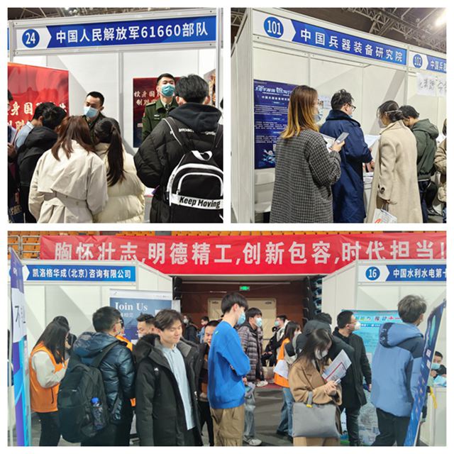 2023年2月27日、2月28日和3月1日,我校分別在良鄉校區和中關村校區連續舉辦三場針對2023屆畢業生的大型綜合招聘會。本次招聘會共吸引了包括機關、企事業單位、科研院所、部隊、高校、金融機構等各行業442家單位來校參會,同時有中國兵器裝備集團、沈陽市、南昌市等重點單位和地區組團招聘。這是最近幾年學校舉辦的最大規模線下招聘活動,共提供就業崗位1萬8千余個,招聘需求基本涵蓋我校全部專業。
