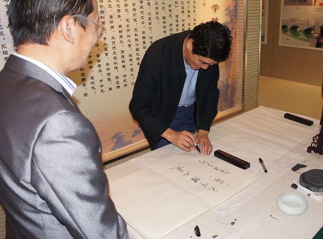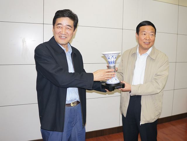趙顯利副校長向河南理工大學贈送禮物“欣欣向榮”