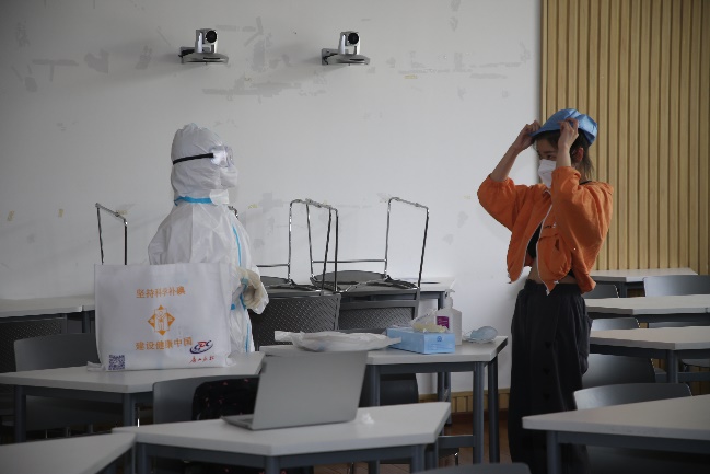 學校疫情防控工作領導小組接到學生確診信息后,立即啟動《北京理工大學應對新冠肺炎疫情校園全面封閉管理工作預案》,并向屬地報告。相關部門第一時間封控確診人員所在樓宇,全部人員原地靜止,等待疾控部門進校處置。確診人員在醫護人員指導下穿戴防護服,轉移至臨時隔離區域等待轉運。