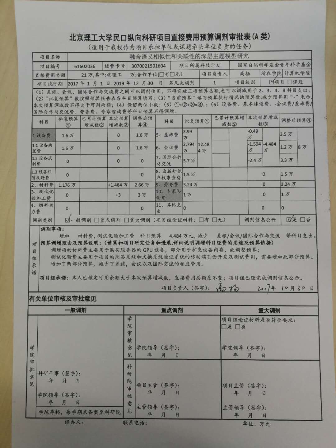 項目61602036預算調劑公示