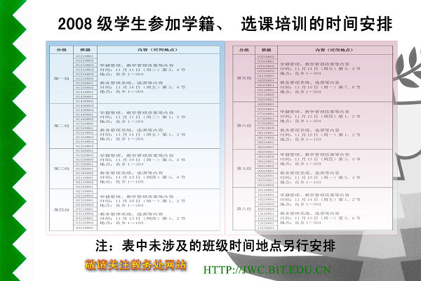為使2008級同學們深刻了解大學期間的學習安排、學籍管理、學位獲得等相關規定,順利完成大學四年學習,成為國家需要的合格人才,教務處會同基礎學院,于2008年11月10日至14日,在良鄉校區面向2008級學生舉辦了涉及學籍學位、課程進程、選課流程和成績管理等內容的培訓。