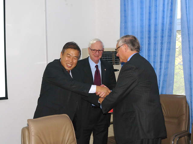 2009年10月20日下午,英國國家學歷認證中心項目主任白云博士、美國里士滿大學倫敦分校名譽校長Cyril Taylor爵士、美國里士滿大學倫敦分校校長Ian Newbould博士和顧問Clive Tucker先生一行到我校訪問,我校李和章副校長、教務處徐瑾副處長、SQA中心宋桂芝主任、基礎教育學院高偉濤副院長和外國語學院邢清清老師參加了會談。