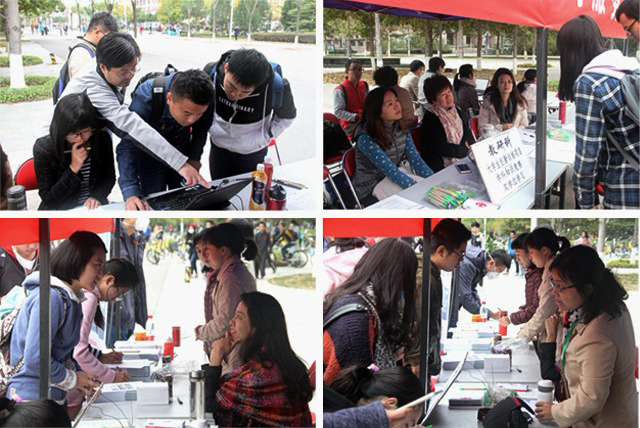 教務處圍繞師生關心的熱點問題開展現場咨詢,并首次將業務辦理現場搬到室外,為師生演示新版本科教務管理系統。本科教務系統更新項目自2014年啟動至今,歷時近3年,教務處各科室教師參與其中,多次奔赴兄弟高校開展調查研究,深入了解我校師生的需求與期望,與開發人員共同商討技術細節。目前,新版本科教務管理系統核心功能已進入試運行階段,后續將按業務開展的時間順序在系統中逐步開放相應功能。