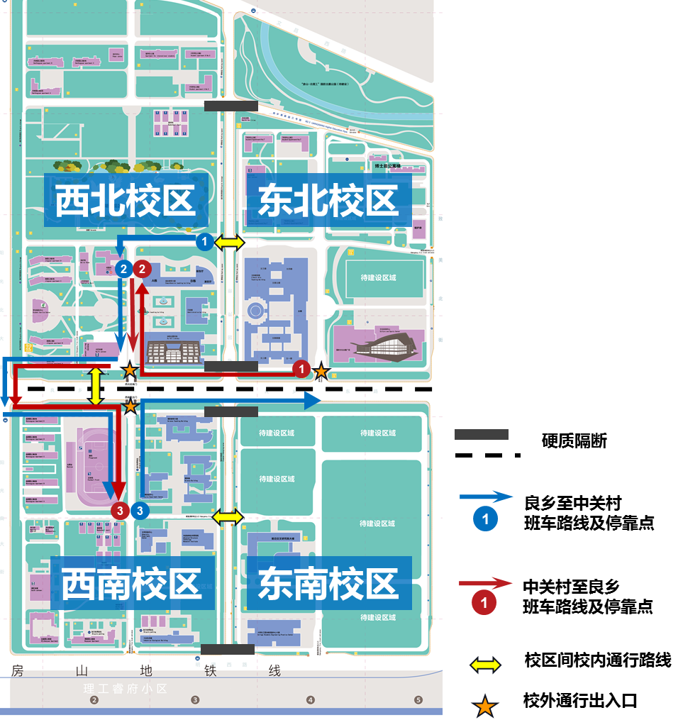 1.按屬地政府要求,自2022年4月26日0時起,良鄉校區東、西校區之間學園北街將暫停社會車輛和社會人員通行,在南、北校區之間良鄉東路上設置硬質隔斷,詳見附圖。