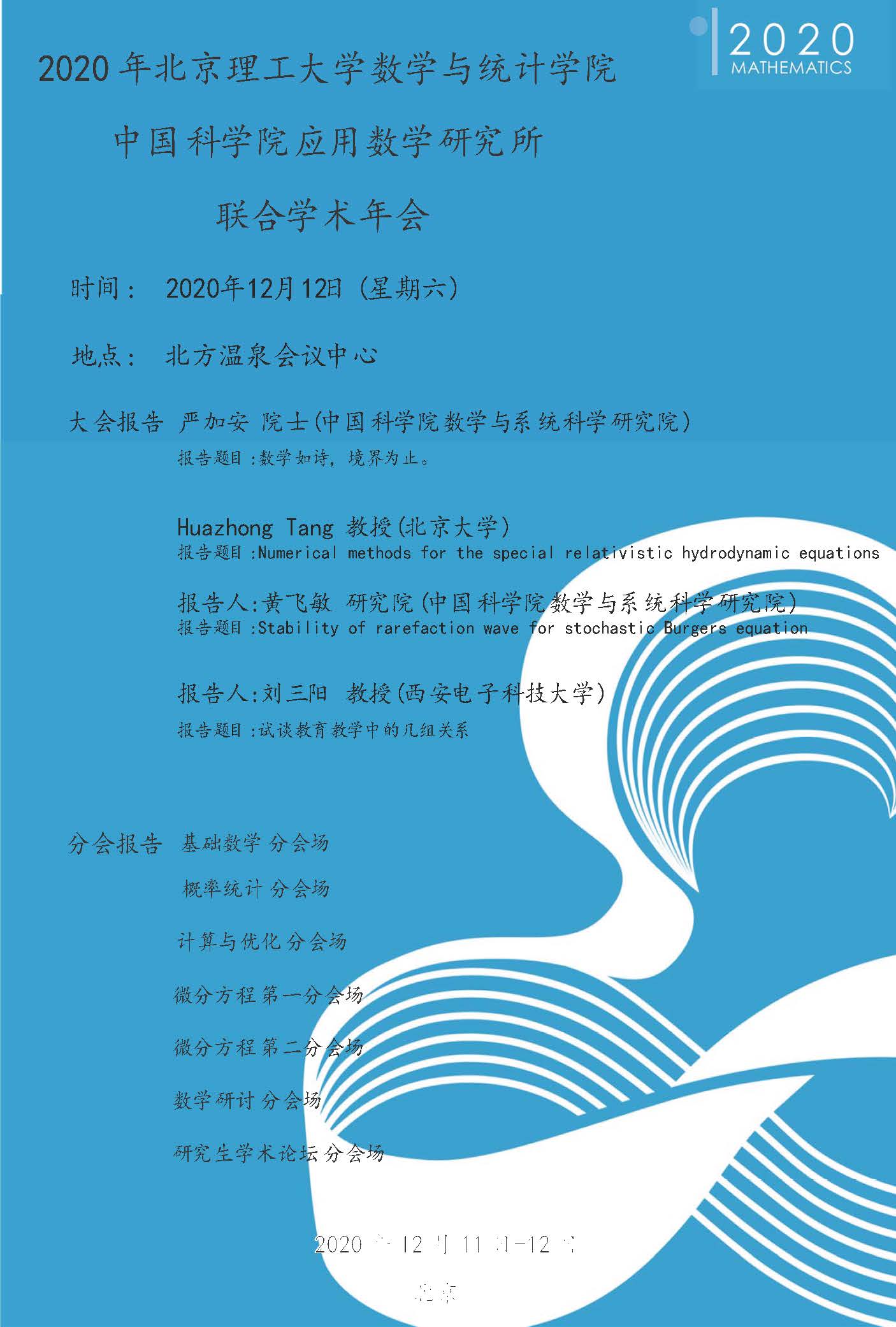 北京理工大學數學與統計學院、中國科學院應用數學研究所 2020年學術年會通知