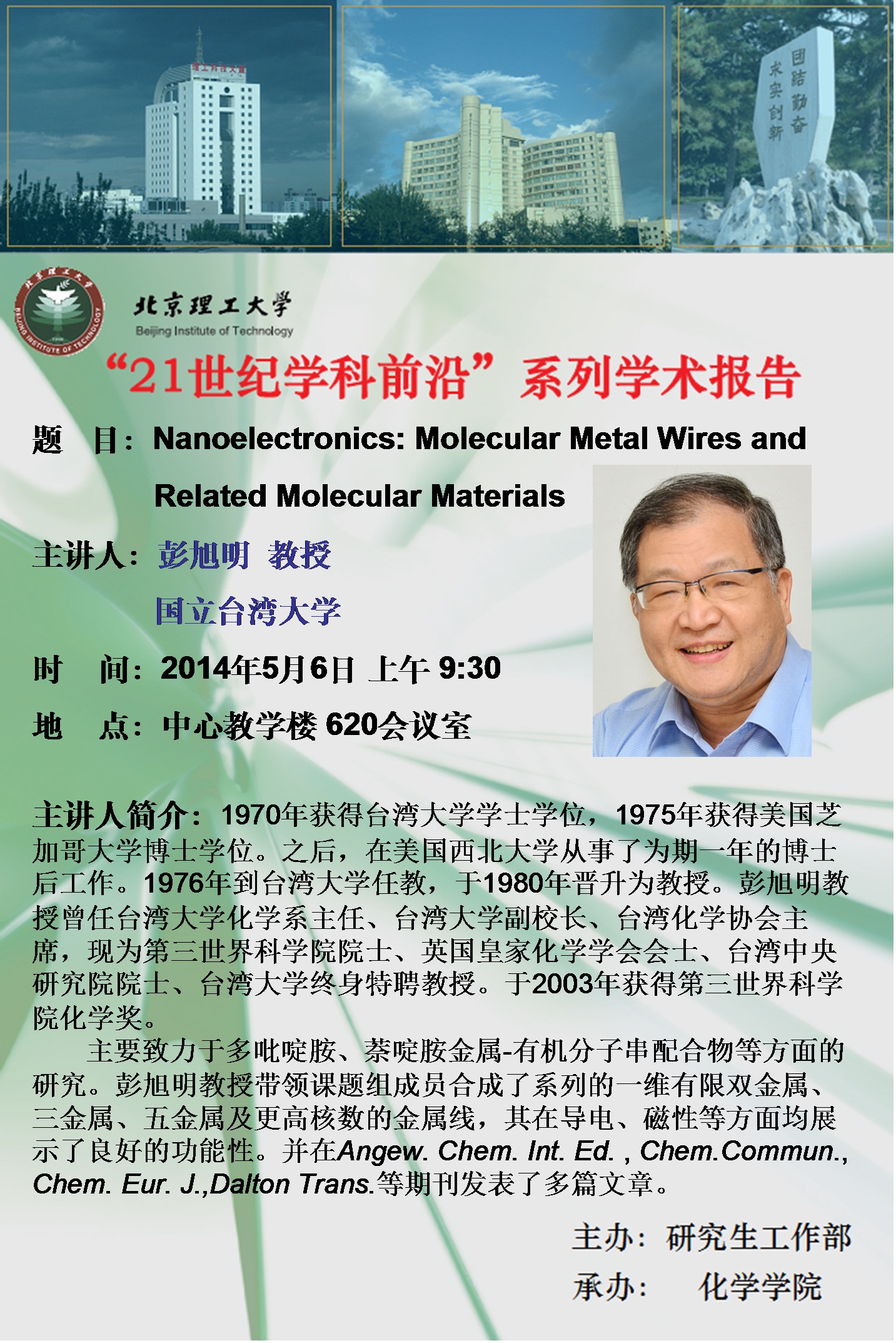 ?>?化學(xué)學(xué)院“21世紀(jì)學(xué)科前沿”彭旭明院士學(xué)術(shù)報(bào)告預(yù)告