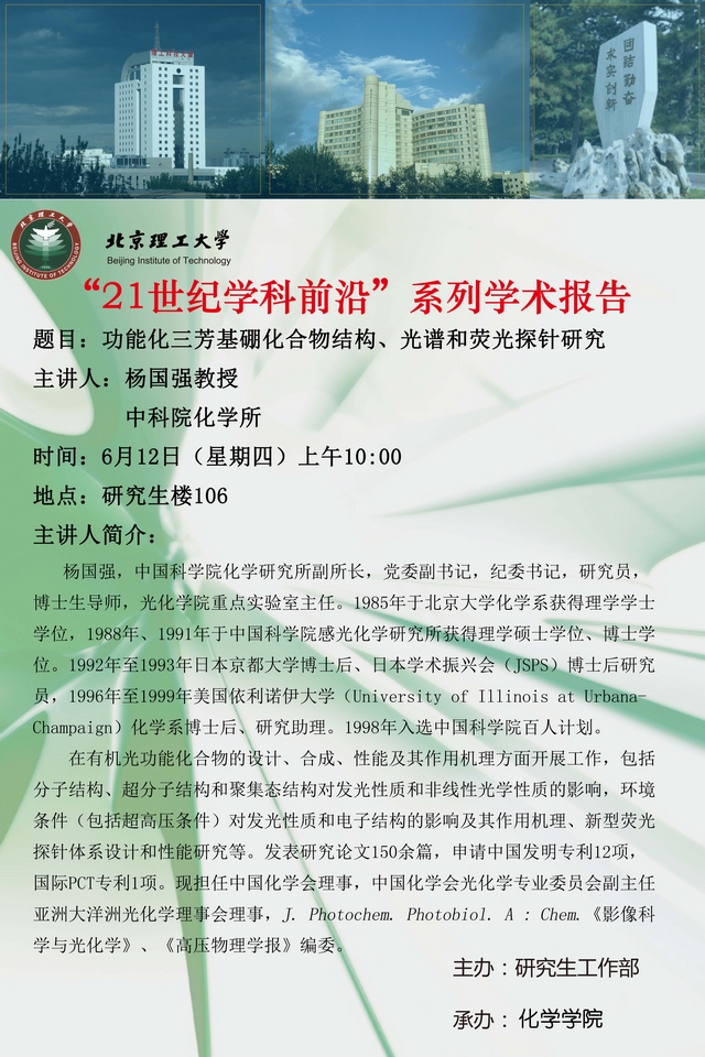 ?>?化學學院“21世紀學科前沿”楊國強教授學術報告預告