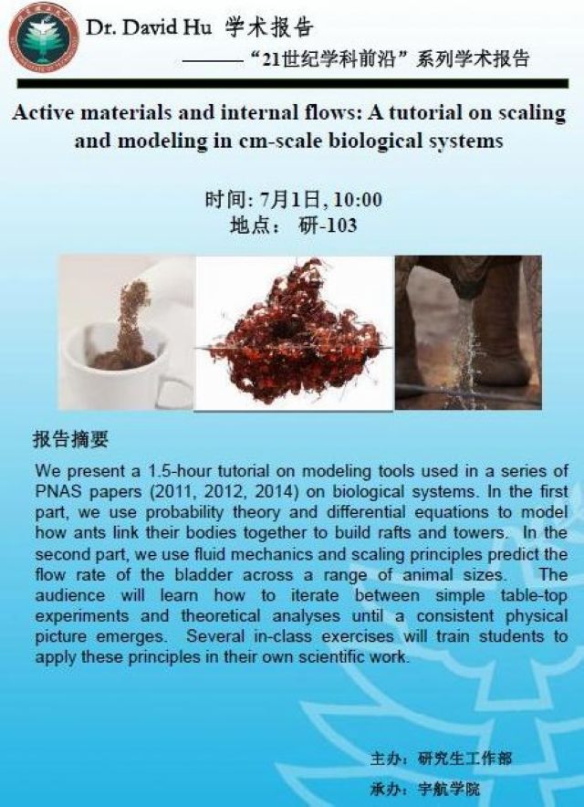 宇航學院7月1日“21世紀學科前沿”系列學術報告預告