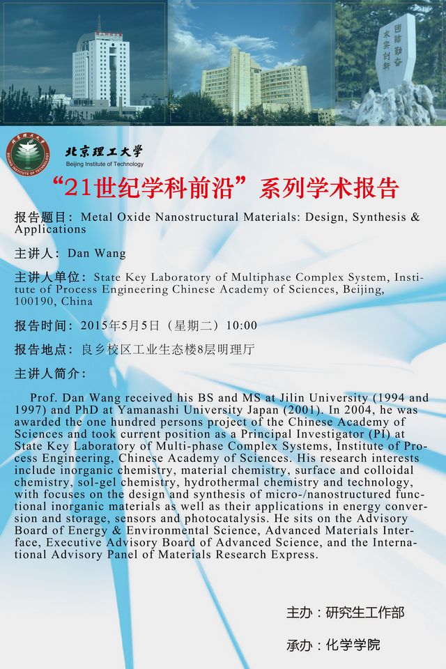 化學學院"21世紀學科前沿"系列學術報告預告