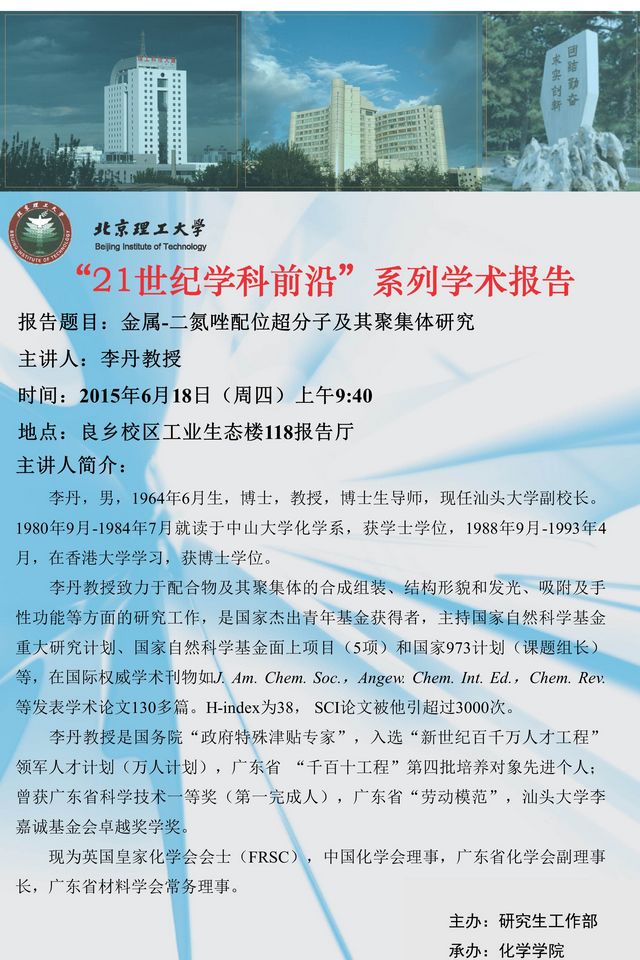 化學(xué)學(xué)院"21世紀(jì)學(xué)科前沿"系列學(xué)術(shù)報(bào)告預(yù)告