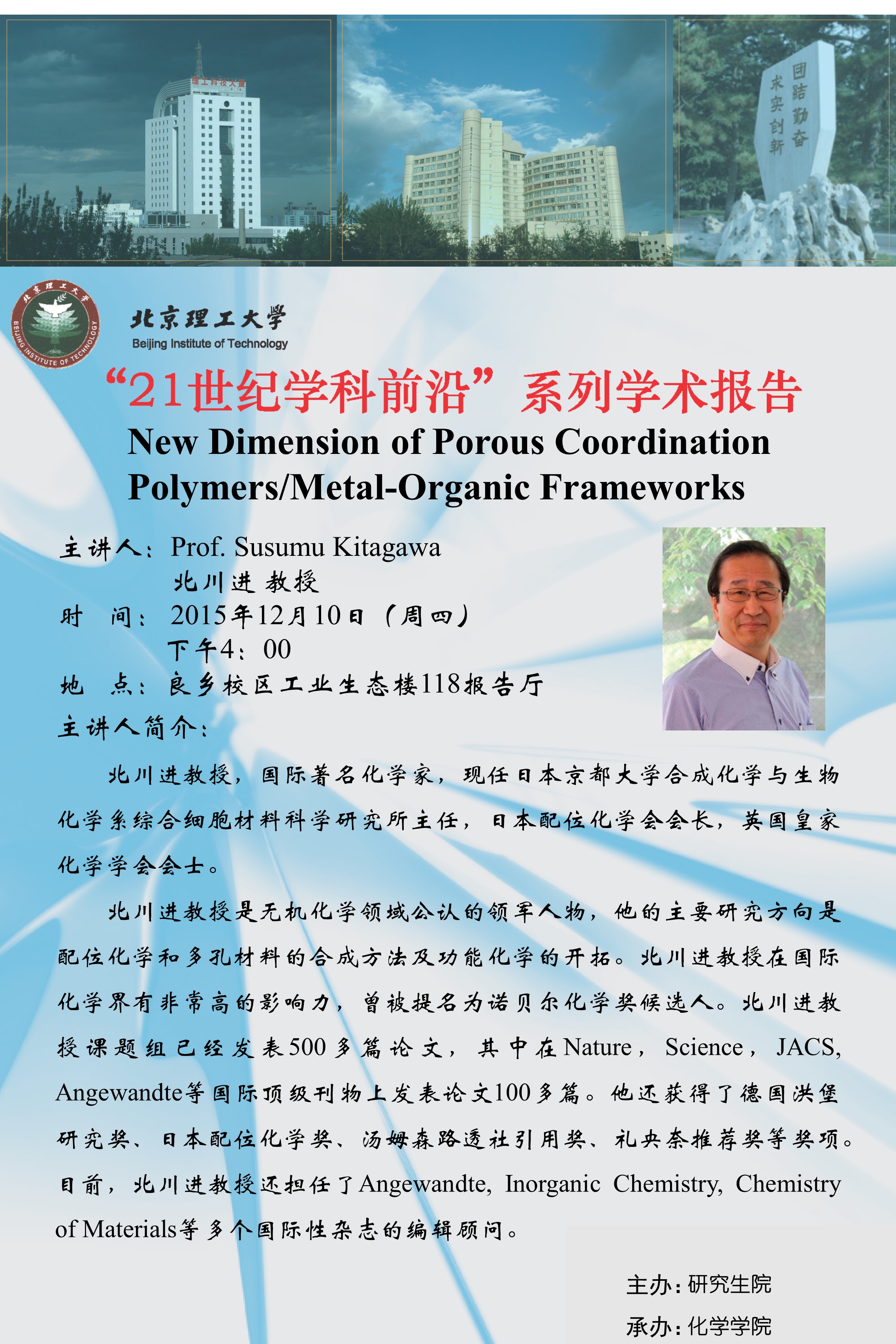 ?>?【化學學院】“21世紀學科前沿”北川進教授學術(shù)報告通知