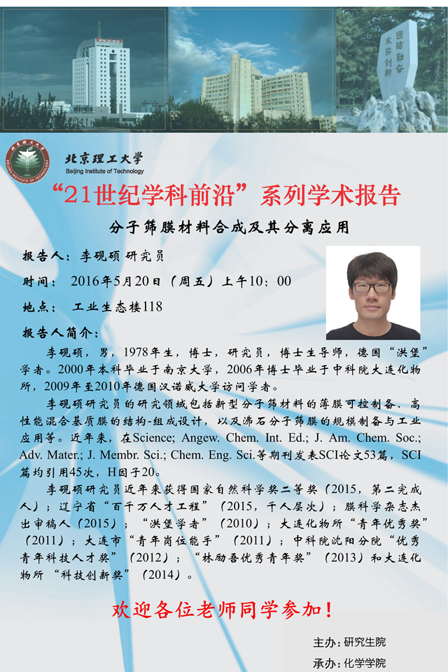 ?>?【化學(xué)學(xué)院】“21世紀(jì)學(xué)科前沿”李硯碩研究員學(xué)術(shù)報(bào)告通知