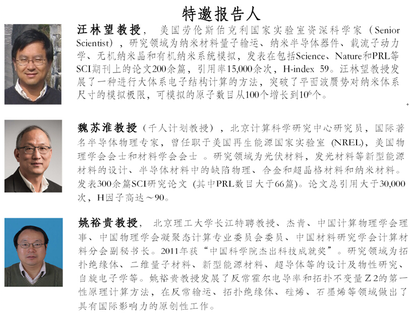 本次交流會由物理學院聯合及北京龍訊曠騰科技有限公司主辦,特邀美國勞倫斯伯克利國家實驗室汪林望教授、北京計算科學研究中心魏蘇淮教授、北京理工大學姚裕貴教授針對高通量材料計算、材料基因工程關鍵技術、TDDFT等熱點問題進行交流研討。