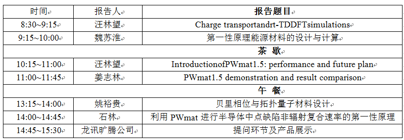 PWmat軟件在材料基因組快速搜索和 含時密度泛函(TDDFT)領域的典型應用交流會