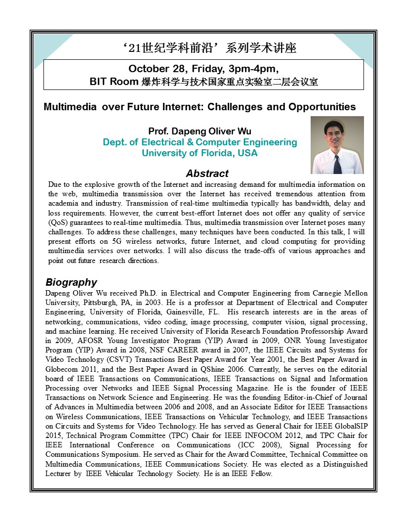 ?>?【機電】“21世紀學科前沿”系列學術講座—Multimedia over Future Internet: Challenges and Opportunities