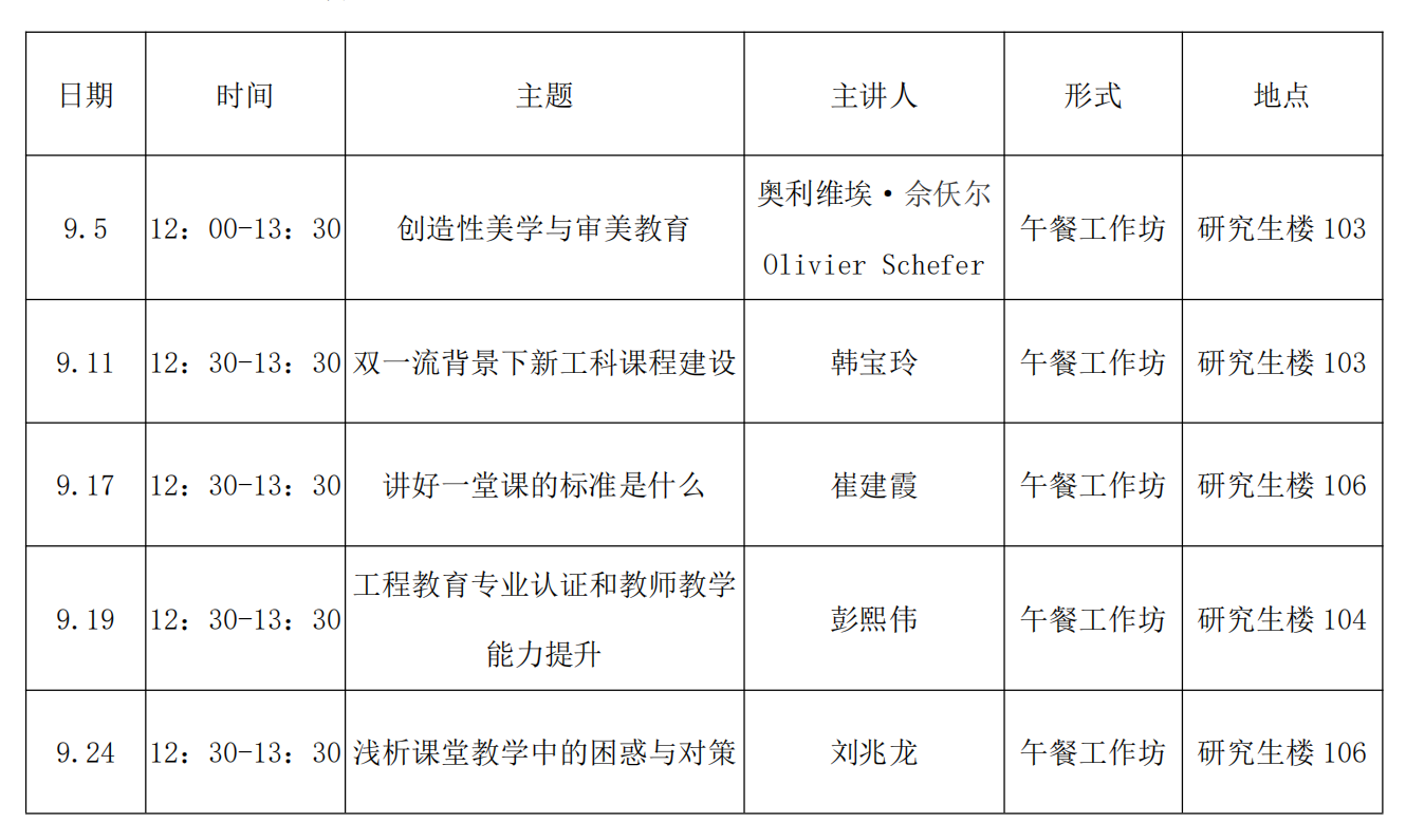 【教師發(fā)展中心】“以學(xué)生為中心”教學(xué)能力提升系列工作坊安排(9月)