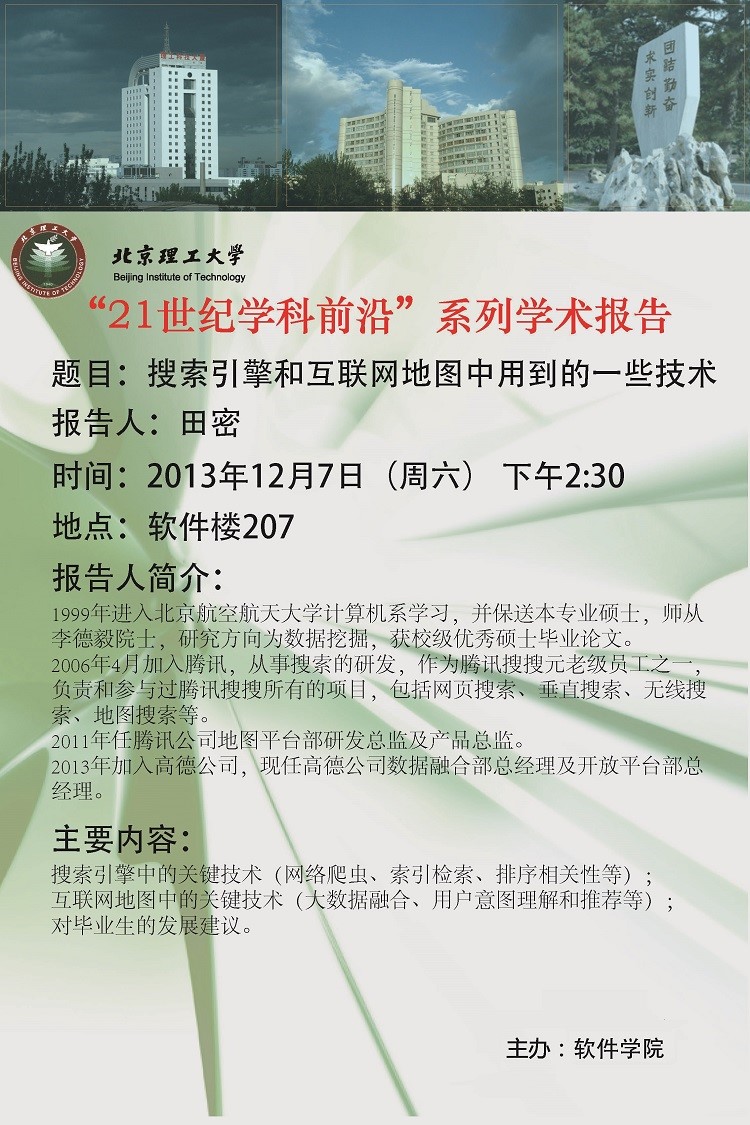 ?>? 軟件學院"搜索引擎和互聯網地圖技術講座暨高德公司招聘會" 預告