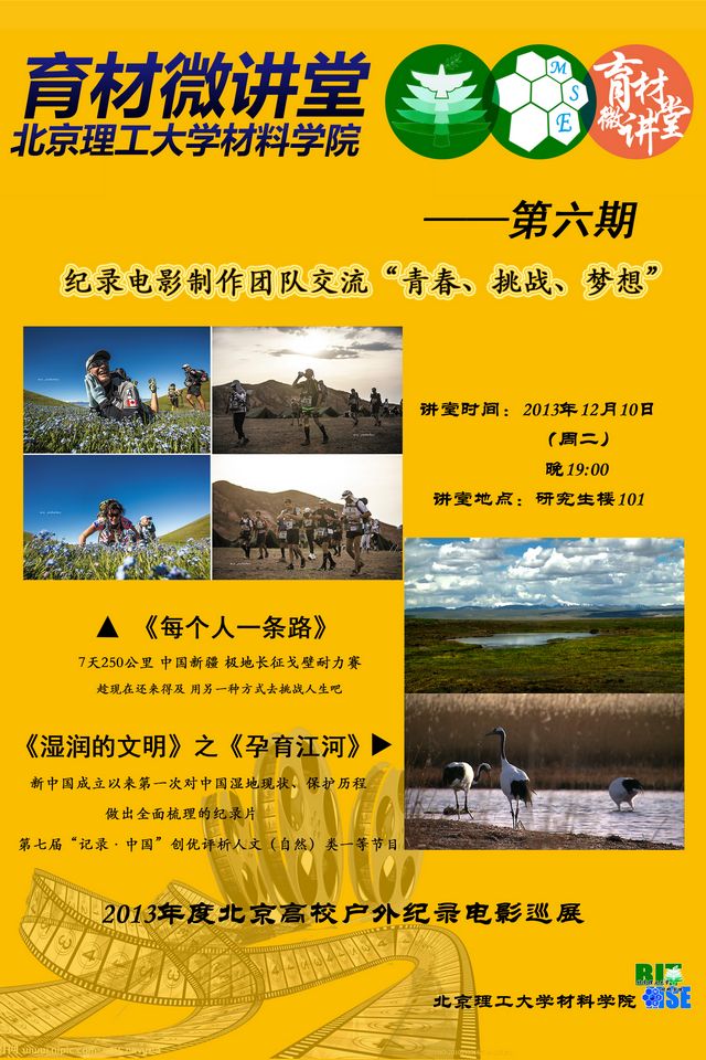 “育材微講堂”是材料學院于2012年11月創辦的適應新形勢的、適應新需求的面向材料學院學生和全校學生的開放式的教育型活動。活動宗旨是“育人為本、通材達識、微言微理、講學品知、薈萃一堂”。“育材微講堂”中的“微”有三重含義:第一,是靈活小巧的“微”,講座形式小巧靈活,分別有為實體講座和網絡微講堂等形式;第二,是新型通訊工具微博微信的“微”,材料學院希望借助新型媒體工具的力量,將一些教育理念傳播到每一位學生,加強互動,方便學生反饋問題;第三,是通過各位嘉賓的“微言微理”,用小道理來潛移默化影響學生。