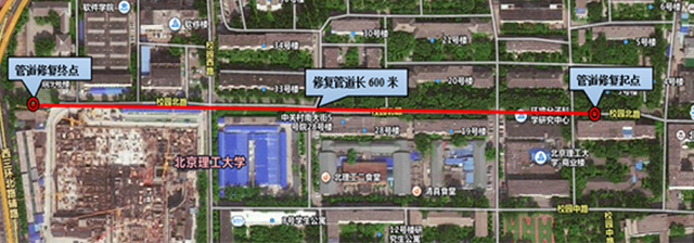 涉及我校排水管道改造工程共10個井位9段,施工方法為UV內襯依次分段施工,不破壞路面,在管內采用穿插法和原位固化法對原有管道進行加固修復,長度約600米。具體施工路段詳見下面示意圖。