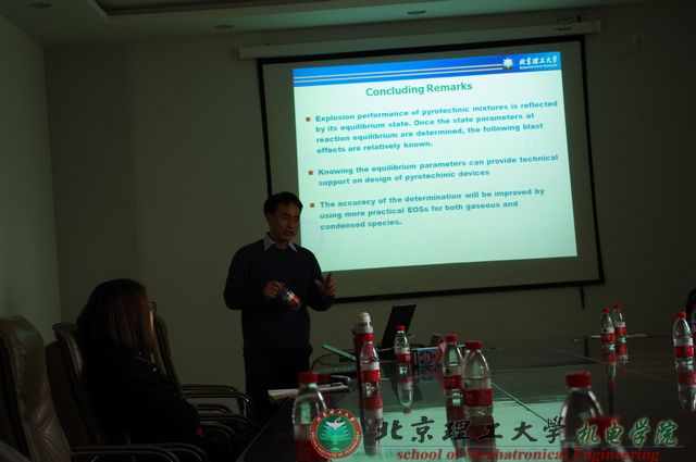 接下來,劉志躍老師輕松幽默但又不失嚴謹的做題為“煙火劑等含能材料爆炸特性預測方法和分析”報告。詳細闡述了含能材料(煙火劑)燃燒,爆炸后混合物壓力場的計算工作,以及相關實驗工作。