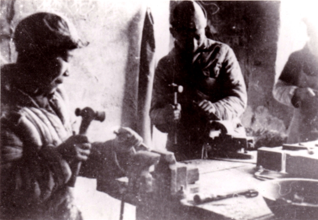 延安自然科學院時期學生們在校辦工廠學習鉗工