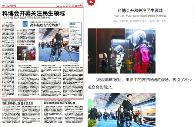 在北京高精尖產業創新成果展區,不少高精尖技術展現了在惠及民生領域的新突破。人工智能企業云知聲把智能家居客廳搬到現場,展示如何讓家電“呼之即來”。智慧醫療區域內,大艾機器人帶來了智能康復外骨絡機器人。如同雙腿般的外骨絡機器人實現不斷邁步走動,可以讓癱瘓的患者重新完成站立、行走、上下樓梯等行動,并長期進行康復訓練。