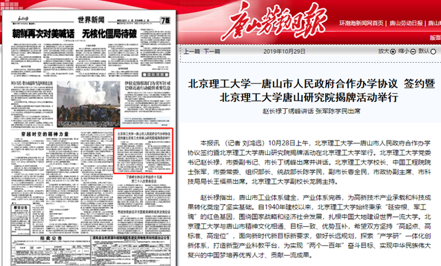 北京理工大學(xué)—唐山市人民政府合作辦學(xué)協(xié)議簽約暨北京理工大學(xué)唐山研究院揭牌活動(dòng)舉行