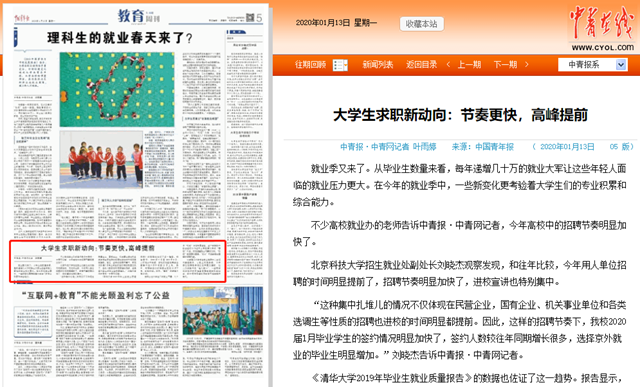 “這種集中扎堆兒的情況不僅體現(xiàn)在民營(yíng)企業(yè),國(guó)有企業(yè)、機(jī)關(guān)事業(yè)單位和各類選調(diào)生等性質(zhì)的招聘也進(jìn)校的時(shí)間明顯都提前。因此,這樣的招聘節(jié)奏下,我校2020屆1月畢業(yè)學(xué)生的簽約情況明顯加快了,簽約人數(shù)較往年同期增長(zhǎng)很多,選擇京外就業(yè)的畢業(yè)生明顯增加。”劉曉杰告訴中青報(bào)·中青網(wǎng)記者。