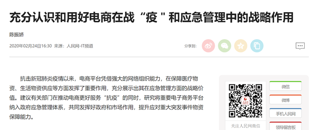 編輯:吳楠 審核:劉曉俏 閱讀次數:原文標題:充分認識和用好電商在戰“疫"和應急管理中的戰略作用