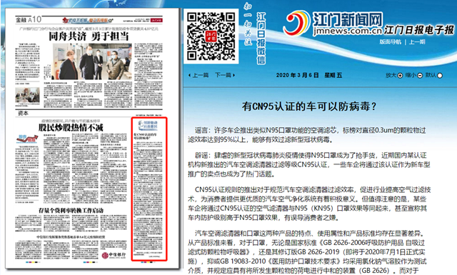 編輯:吳楠 審核:劉曉俏 閱讀次數(shù):原文標題:有CN95認證的車可以防病毒?