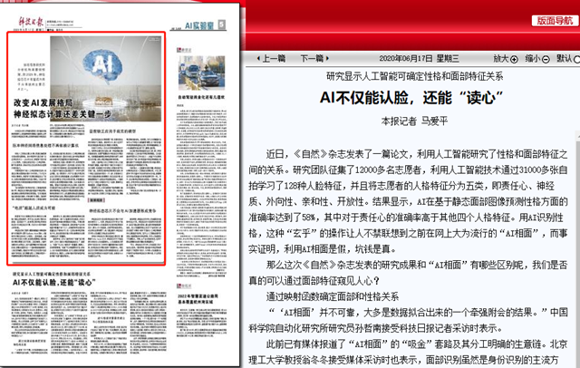 近日,《自然》雜志發(fā)表了一篇論文,利用人工智能研究了性格和面部特征之間的關(guān)系。研究團(tuán)隊(duì)征集了12000多名志愿者,利用人工智能技術(shù)通過31000多張自拍學(xué)習(xí)了128種人臉特征,并且將志愿者的人格特征分為五類,即責(zé)任心、神經(jīng)質(zhì)、外向性、親和性、開放性。結(jié)果顯示,AI在基于靜態(tài)面部圖像預(yù)測(cè)性格方面的準(zhǔn)確率達(dá)到了58%,其中對(duì)于責(zé)任心的準(zhǔn)確率高于其他四個(gè)人格特征。用AI識(shí)別性格,這種“玄乎”的操作讓人不禁聯(lián)想到之前在網(wǎng)上大為流行的“AI相面”,而事實(shí)證明,利用AI相面是假,坑錢是真。