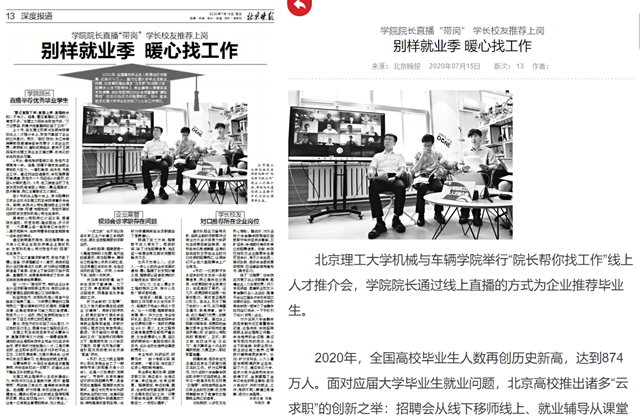 北理工機車學院黨委書記馮慧華分析,直播求職有三大優勢:一是精準施策,遴選的企業是和學院專業完全對口且多年合作,便于有針對性地推介人才;二是效果實時,企業和學生可以在多對多的平臺上互動,及時反饋結果;三是效果綜合,讓低年級學生觀摩學習,也是恰當的就業教育。