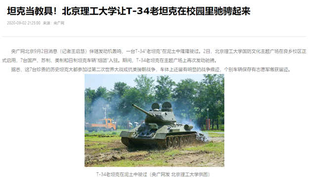 編輯:吳楠 審核:劉曉俏 閱讀次數:原文標題:坦克當教具!北京理工大學讓T-34老坦克在校園里馳騁起來