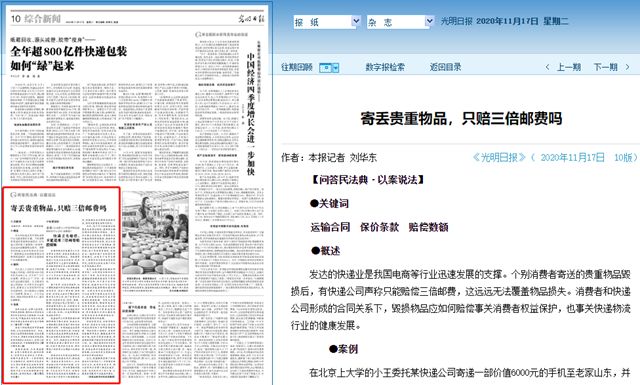 編輯:吳楠 審核:劉曉俏 閱讀次數:原文標題:寄丟貴重物品,只賠三倍郵費嗎